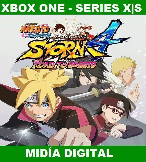NARUTO SHIPPUDEN: Ultimate Ninja® STORM 4 Road to Boruto encerra a série Ultimate Ninja Storm e reúne todos os pacotes de conteúdo DLC para Storm 4 e os bônus de pré-venda (antes exclusivos)! Os jogadores não apenas receberão o jogo e os pacotes de conteúdo de Ultimate Ninja Storm 4, mas também receberão uma aventura nova "Road to Boruto" que contém muitas novas horas de jogo com o filho do Naruto, que faz parte de uma geração de ninjas totalmente nova.