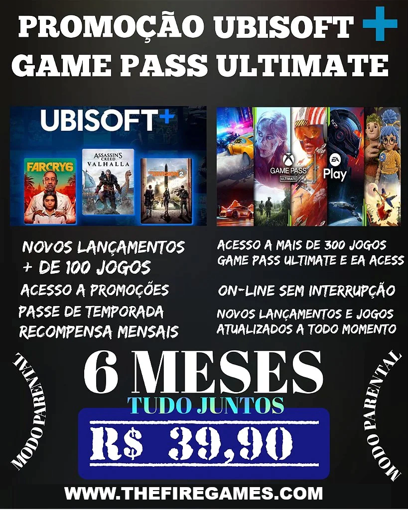 UBISOFT PREMIUM + GAME PASS ULTIMATE + EA ACESS 6 MESES PROMOÇÃO